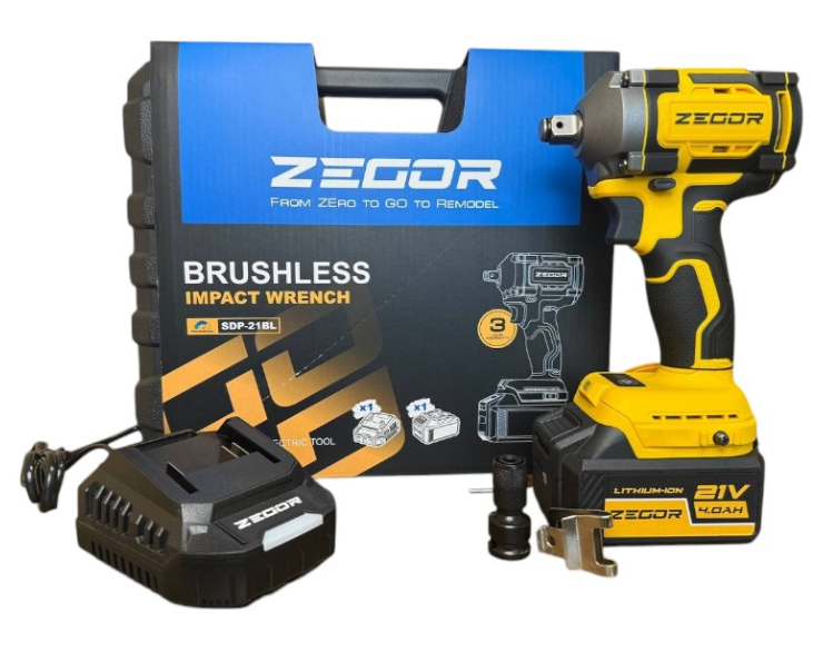 Ударный аккумуляторный гайковерт Zegor SDP-21BL - спец. инструмент, активно используемый автослесарями, сантехниками и строительными специалистами. С его помощью можно быстро закрутить и выкрутить крепежные изделия болты, гайки. глухари любой сложности. Инструмент оснащен специальным держателем "квадрат", который позволяет оперативно менять разные рабочие насадки. Держатель бит размером 1/2 дюйма позволяет использовать различные размеры насадок. Мощный 21 В аккумулятор с емкостью 4 А/ч, позволяет использовать инструмент довольно длительное время. Отличительной особенностью у гайковерта является надежный и мощный и бесщеточный мотор.