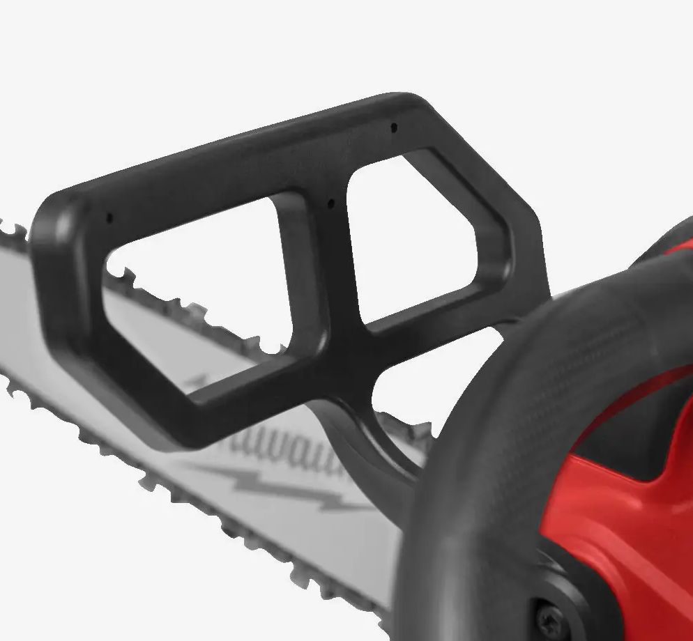 С весом 6,4 кг, аккумуляторная цепная пила Milwaukee M18 FTHCHS35-802 EU отличается хорошей эргономикой. Вес распределяется равномерно благодаря заднему размещению аккумулятора, а металлический зубчатый упор обеспечивает дополнительную стабильность во время резки. Это важно при работе с толстыми ветвями или стволами, когда требуется точное и контролируемое движение.