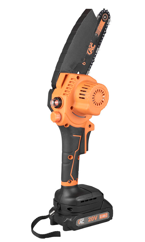 Аккумуляторная цепная пила Tex.AC TAOE-S6OBL — это компактный и мощный инструмент, предназначенный для эффективной работы с деревом и мелкими хозяйственными задачами. Благодаря бесщёточному двигателю, пила отличается высокой производительностью и долговечностью, а также сниженным уровнем износа и минимальными затратами на обслуживание. Она работает от аккумулятора с напряжением 20 В, что делает её удобной для использования в любых условиях без привязки к электросети.
