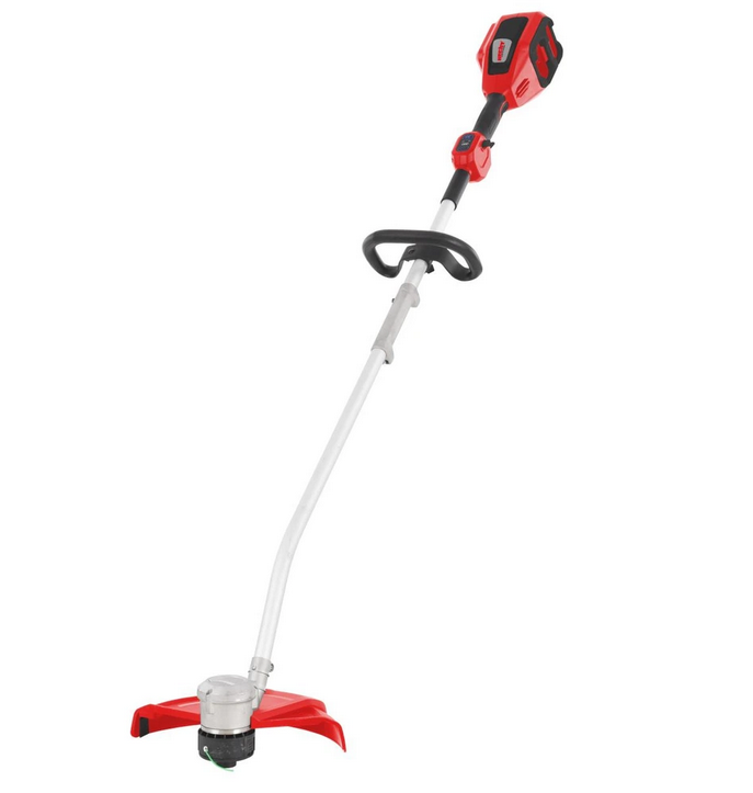 Аккумуляторный триммер с режущей кромкой 32 см. Вес 2,05 кг. Электропитание 2 x 20 В. Время работы без нагрузки около 30 минут.