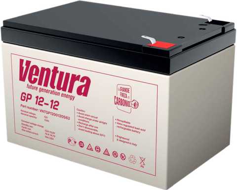 Свинцово-кислотные аккумуляторы Ventura серии GP специально разработаны для нетребовательных систем и оптимизированы для работы в буферном режиме. Аккумуляторы Ventura GP имеют низкое внутреннее сопротивление и высокую плотность энергии. Отвечая международным стандартам безопасности, рекомендованы для применения в охранных пожарных системах и системах контроля и управления доступом.