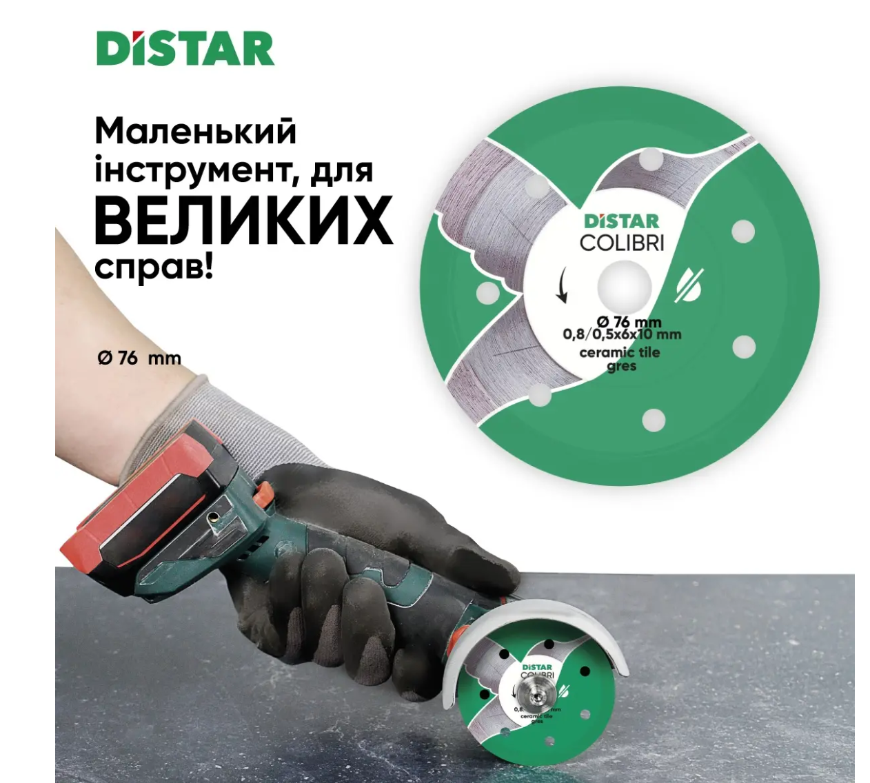 Именно для таких работ был создан уникальный диск Colibri диаметром 76 мм, который может использоваться как на аккумуляторных, так и на сетевых УШМ.