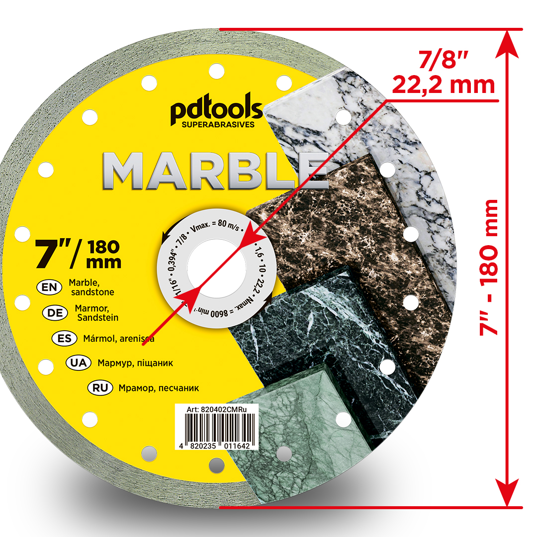 Круг алмазный отрезной PDTools MARBLE 1A1R 180 для ручного инструмента купить в Украине | KING-TOOLS