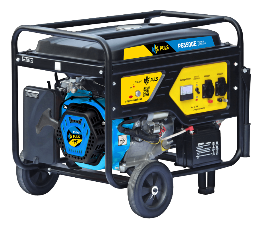 Бытовой бензиновый генератор PULS PG5500E оснащен одноцилиндровым 4-тактным двигателем OHV мощностью 15 л.с., производящим 5000 рабочих ватт и 5750 стартовых ватт.