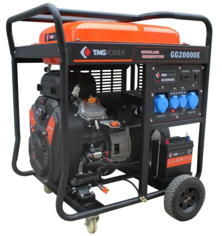 Назначение: Бензиновый генератор высокой мощности предназначен для автономного электроснабжения потребителей напряжением 220В. Установка оснащена двухцилиндровым V-образным четырехтактным двигателем модели 2V90 с воздушным охлаждением. Агрегат смонтирован на крепкой стальной раме и укомплектован колесами для транспортировки.