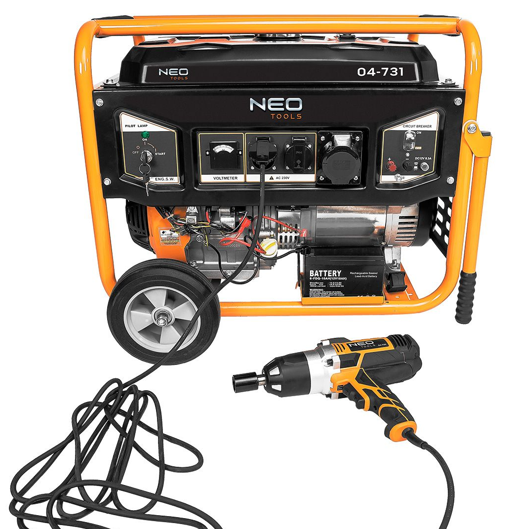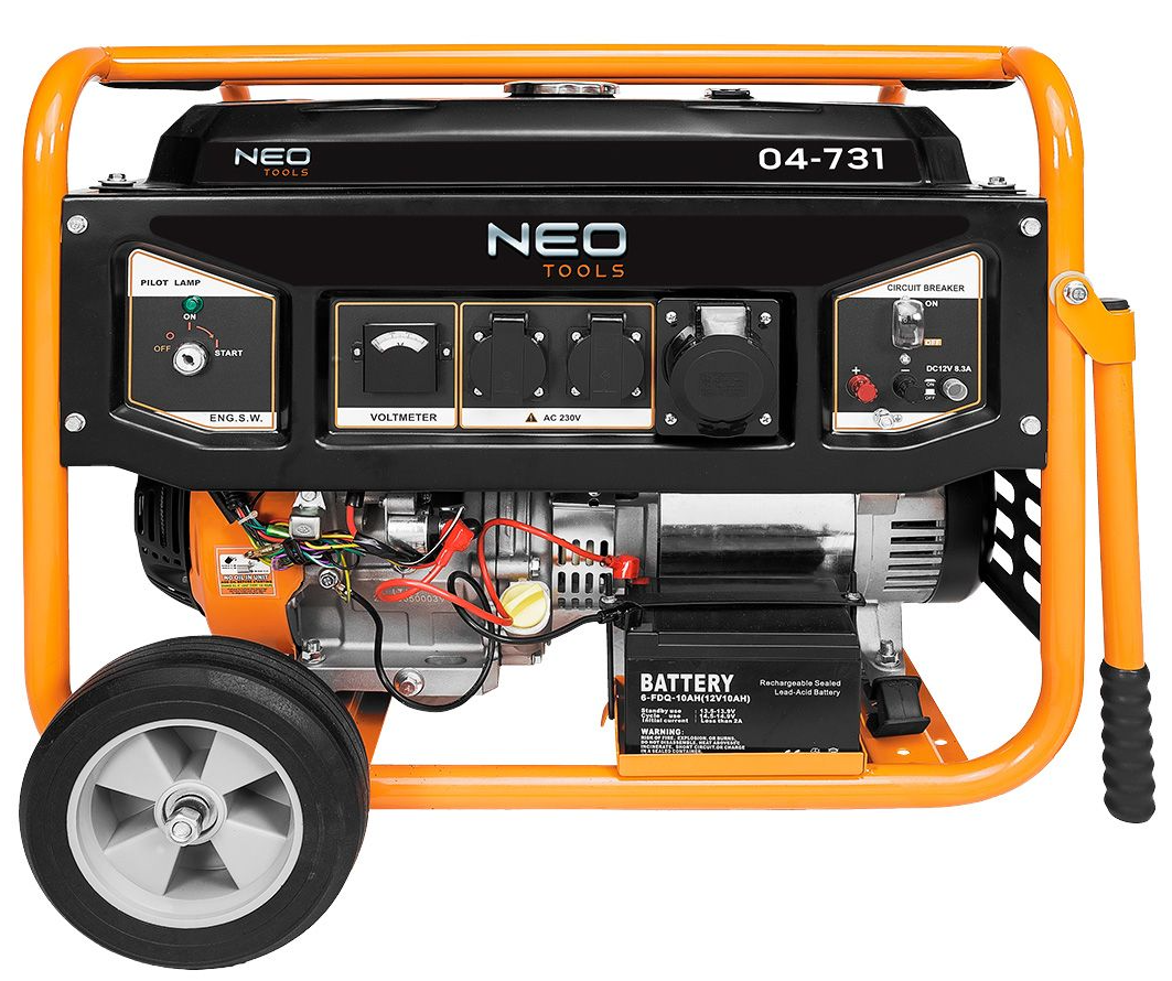 Бензиновый генератор Neo Tools (04-731) представляет собой надежное решение для обеспечения энергией в условиях отсутствия стационарного электроснабжения, обладая мощной производительностью и долговременной автономностью.