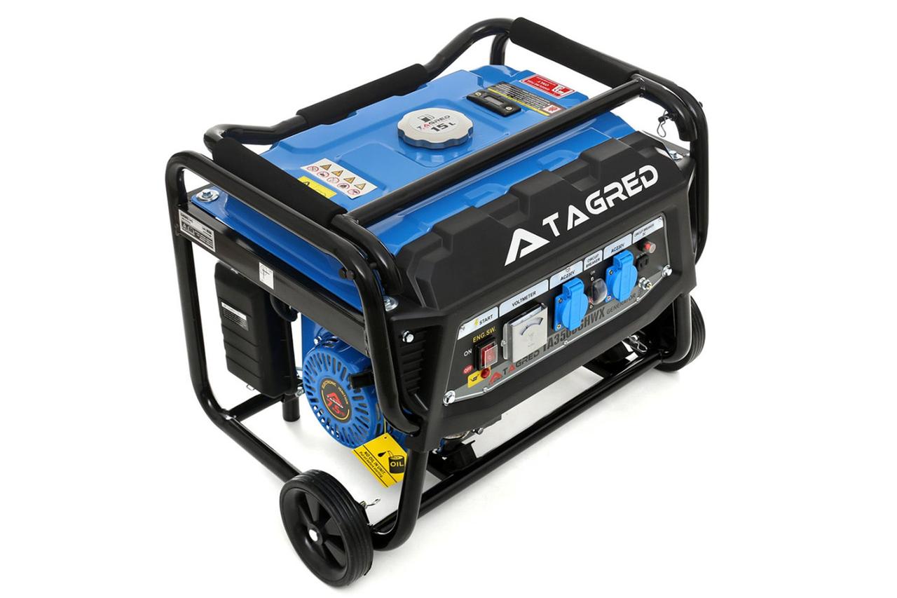 Бензиновый генератор TAGRED TA3500GHWX - мощный генератор для автономной и аварийной подачи электроэнергии для строительных площадок, сада, отдыха и дачи. Номинальная/максимальная мощность генератора составляет 3.0/3.5 кВт.