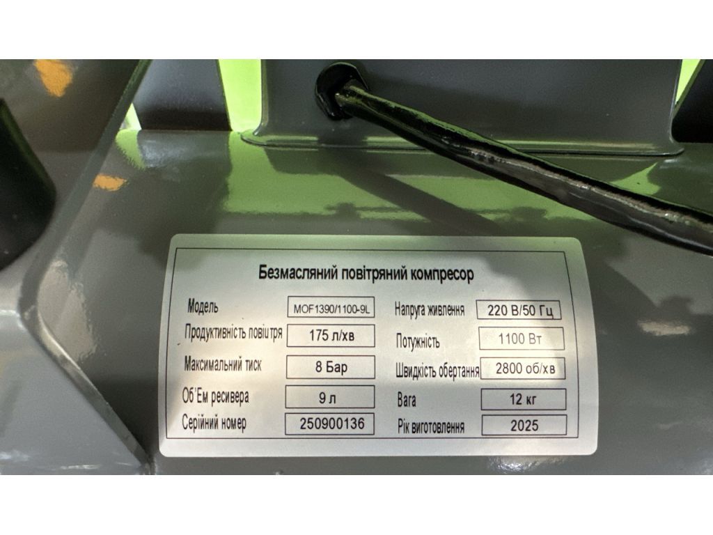 - Объем ресивера – 9 л