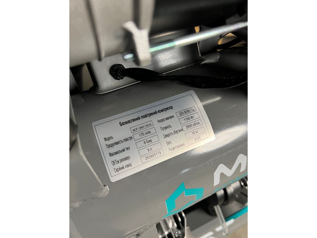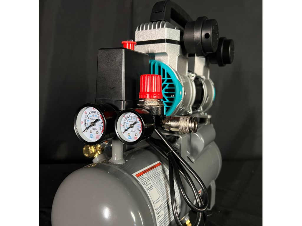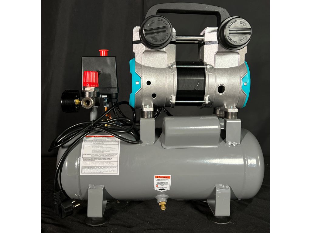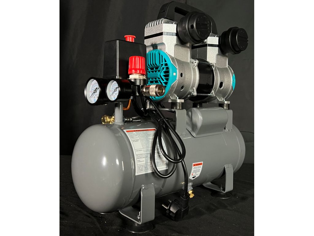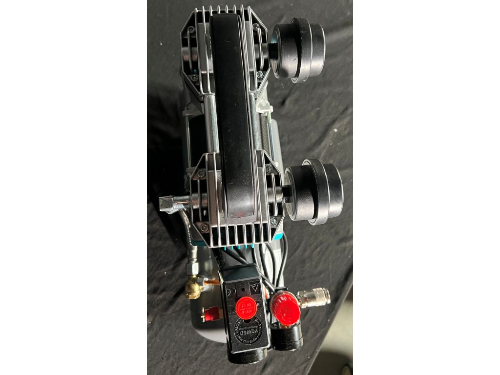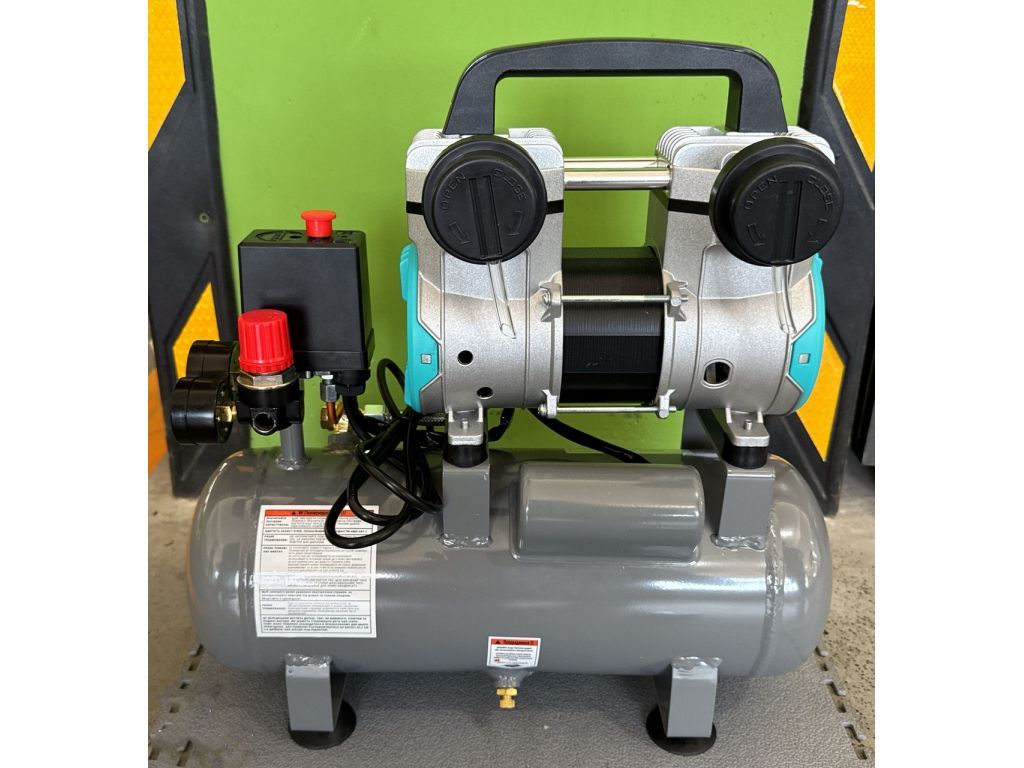 Двойной поршневой блок обеспечивает равномерную подачу воздуха и стабильное давление в ресивере. Поршневое кольцо изготовлено из армированного тефлона (PTFE), имеет низкий коэффициент трения и обеспечивает идеальную герметичность. Двигатель с медной обмоткой мощностью 800 Вт/1,1 кВт защищен от перегрева и перегрузки. Прямой привод минимизирует потери мощности и делает этот компрессор без масла компактнее и легче.