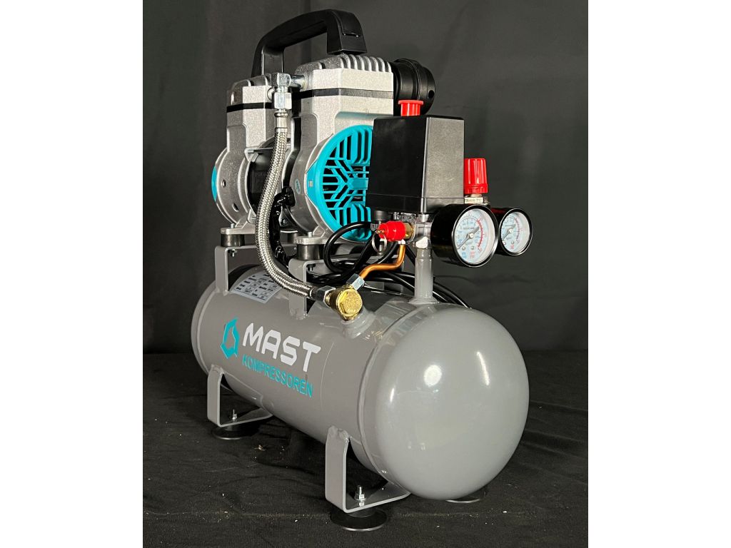 Безмасляный поршневой компрессор Mast MOF1390/1100-9L разработан для задач, требующих сжатого воздуха высокого качества и без примесей масла: стоматологических и лабораторных работ, локального окрашивания, аэрографии, продувки электроники и т.д. Производительность 175 л/мин и ресивер объемом 9 л оптимальные для коротких интенсивных рабочих циклов. Рабочее давление 8 Бар универсальное для большинства пневматических систем.
