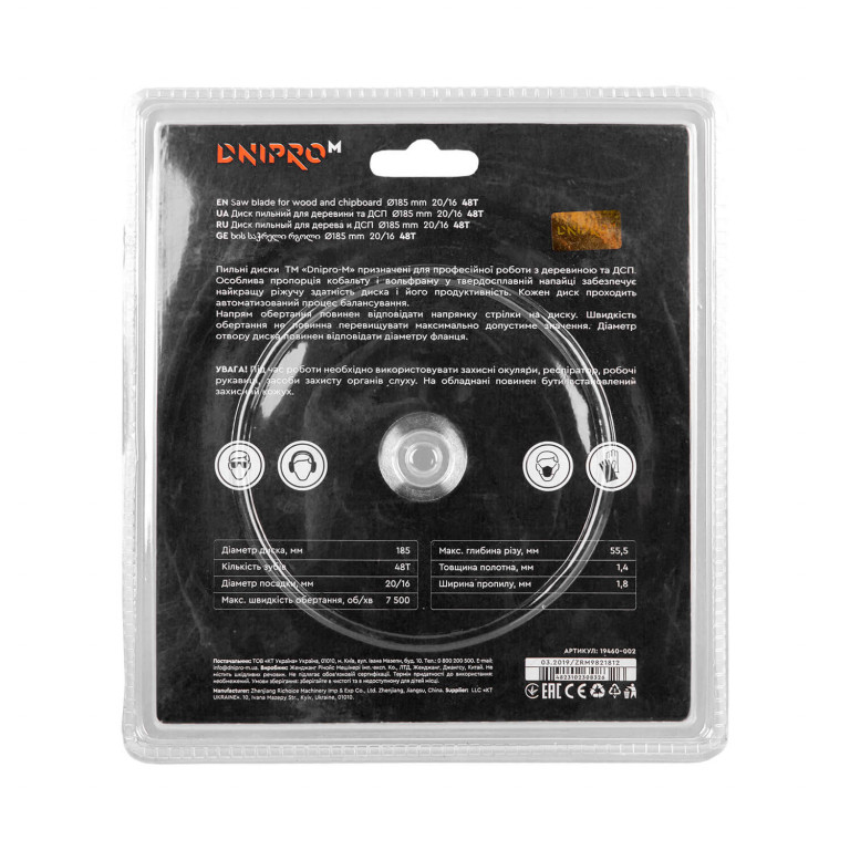 Описание Пильный диск Dnipro-M 185 20.0 16 48Т