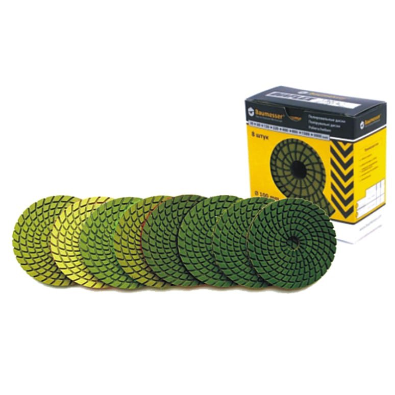 Baumesser DIAFLEX Premium крепиться на шлифмашину с помощью липучки, диаметр самого круга составляет 100мм. Специальная форма сегментов активно убирает шлам и пыль с обрабатываемой части. Такие диски могут работать при вращении от 600 до 3600об/мин. Высокий диапазон зернистости от 30 до 3000 позволяет выполнить как черновую шлифовку так и финишное полирование. Для конечного результата с максимальным качеством следует использовать круги всех зернистостей поочерёдно.