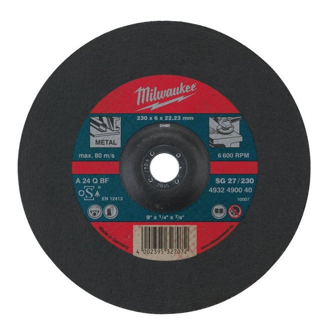 Диск шлифовальный по металлу SG 27/230 PRO+ Milwaukee 4932451504 лучше всего подходит для шлифования легированной и нелегированной стали.