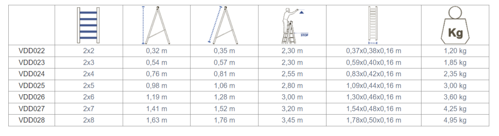 • на заводе VIRASTAR производятся стремянки с числом ступеней от 2х2 до 2х8;