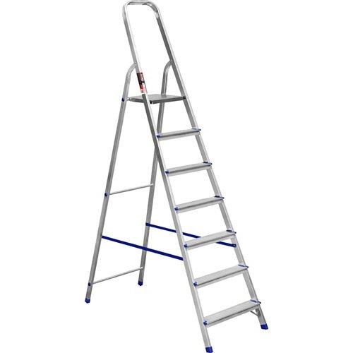Stark SALW507 состоит из 7-ми алюминиевых ступенек, которые зафиксированы заклепками. Ребристая поверхность ступеньки предотвращает скольжение ноги для еще большей безопасности. Верхняя площадка изготовлена из прочной стали, она надежно фиксируется в разложенном состоянии. Удобно разместиться на стремянки помогает опора-рукоятка, за которую можно держаться, подымаясь по лестнице.