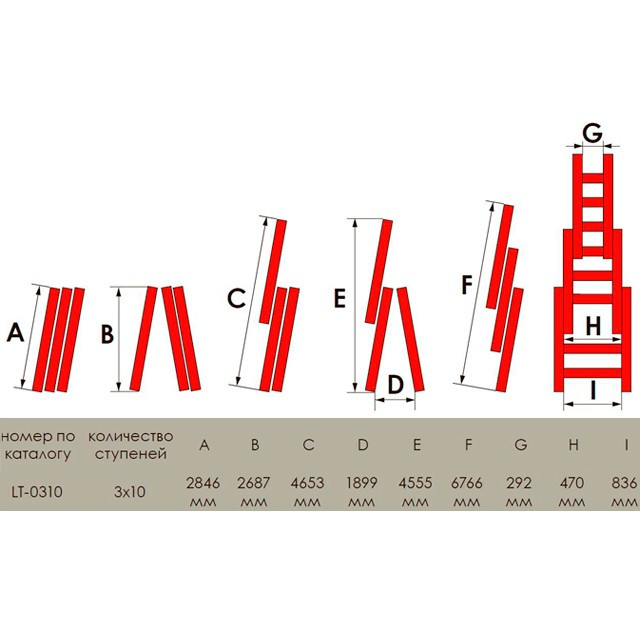 Описание Лестница алюминиевая 3-х секционная универсальная раскладная INTERTOOL LT-0310