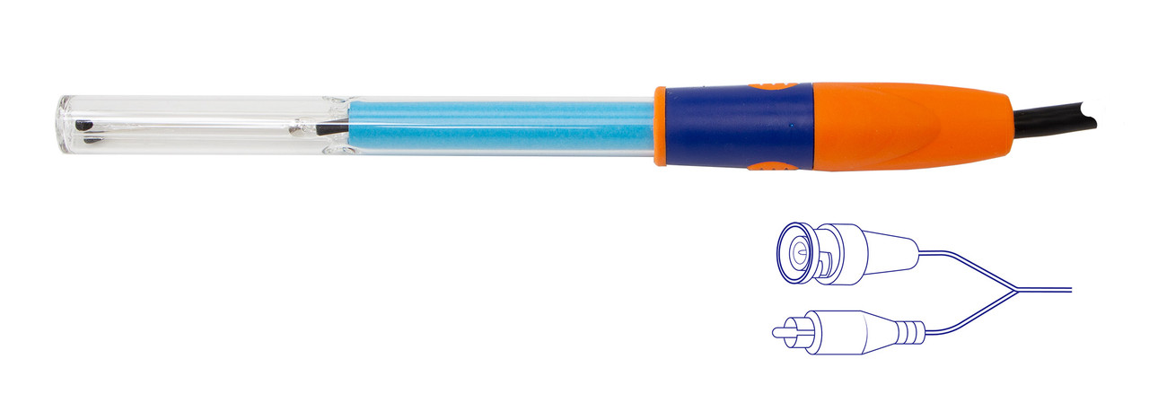 VPT 10 XS Instruments – кондуктометрическая ячейка, изготовленная из стекла и платины со встроенным датчиком температуры, фиксированным кабелем с разъемом BNC и разъемом Cinch.