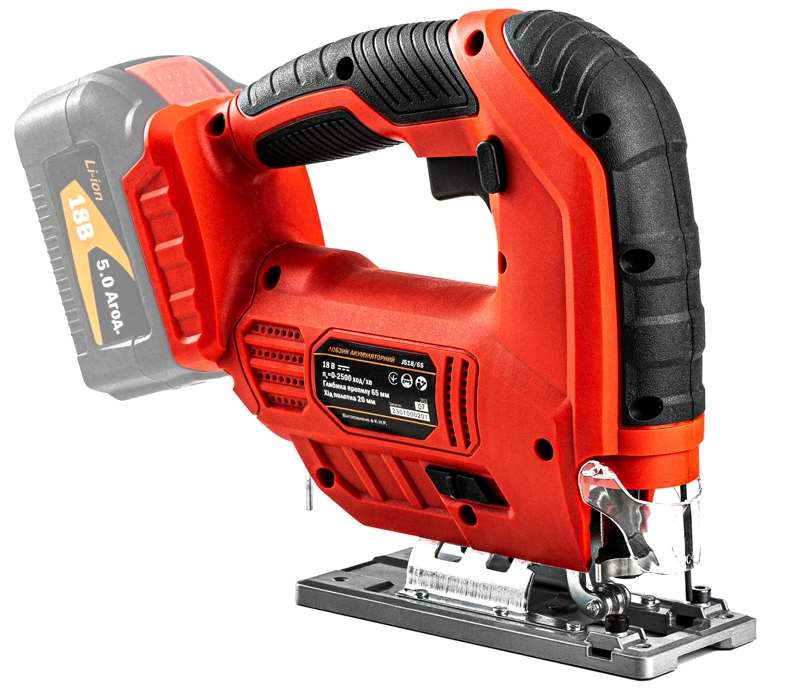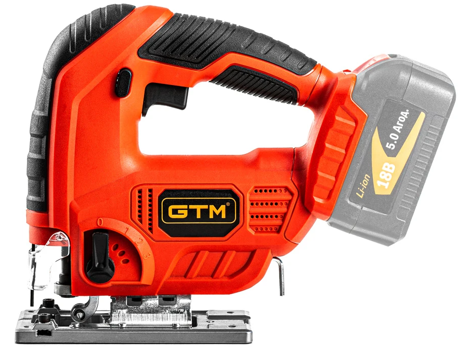 GTM JS18/65 - мощный инструмент для распила различных материалов: от дерева и листов фанеры до цветных металлов или стали. Лобзик питается от стандартных аккумуляторов GTM 18V. Скорость хода пилочки регулируется простым нажатием на курок при работе. Дополнительно в инструмент встроена система маятникового хода для облегчения распила.