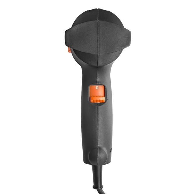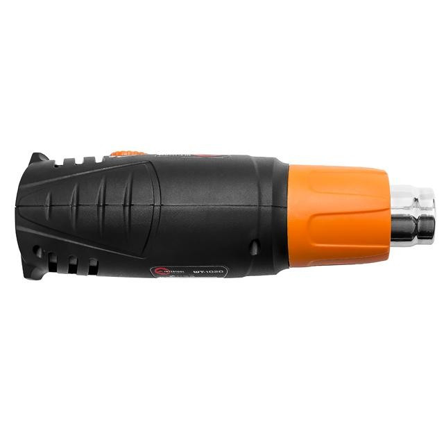 Технический фен WT-1020 имеет эргономичную D-образную рукоятку. Ее особенность заключается в том, что она закрывает пальцы рук пользователя и защищает от попадания отраженной струи горячего воздуха и брызг разогретого материала. Кроме того, вы можете самостоятельно контролировать температуру воздушного потока. Для этого на корпусе фена расположено колесико, предназначенное для плавной регулировки температуры воздушного потока.