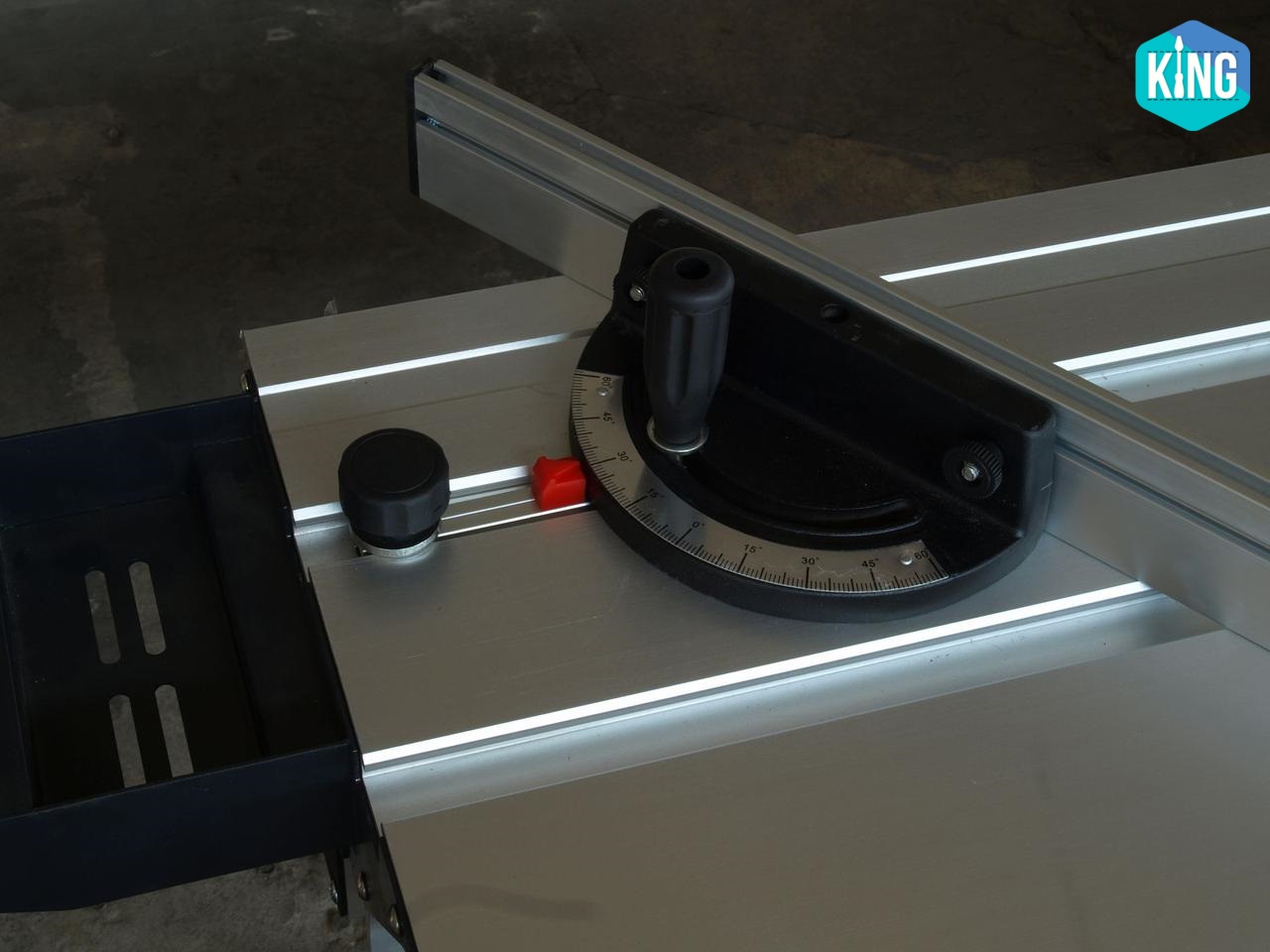 Угловой упор. Угловой упор устанавливается в T-образный паз на рабочем столе станка, он необходим для проведения угловых распилов деревянных заготовок. Упор позволяет фиксировать заготовку под любым углом от 90 до 45 градусов. |