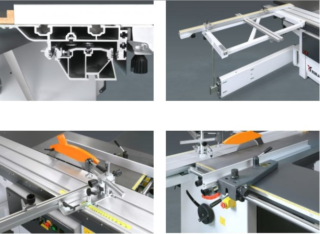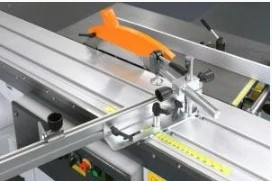 - Поперечная упорная телескопическая линейка с двумя откидными упорами может выдвигаться до 2500 мм