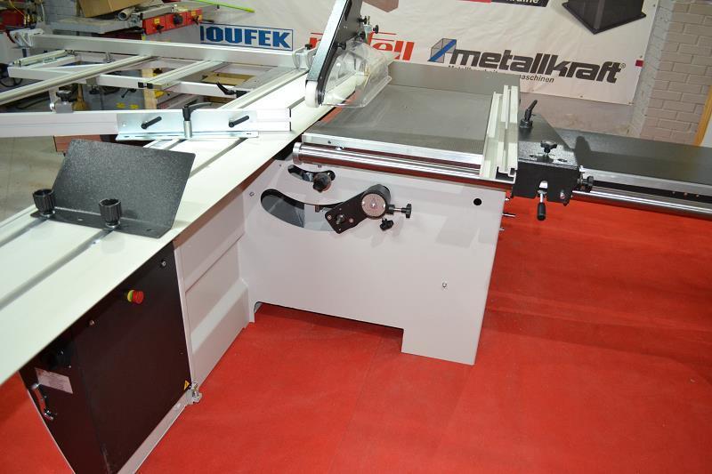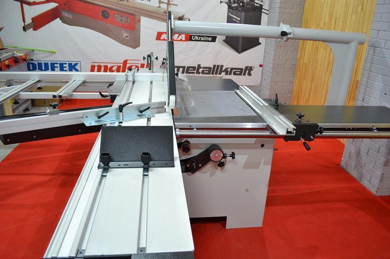 - Поперечная упорная телескопическая линейка с двумя откидными упорами может выдвигаться до 3 000 мм