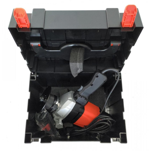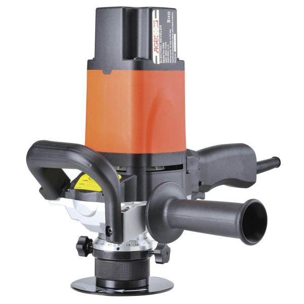 Портативная ручная фацетно-фрезерная машина AGP EB6 кромочного типа для снятия фасок глубиной до 6 мм с прямых и круглых поверхностей под углом 45°. Работает от сети 220В, электродвигатель 1.1 кВт обеспечивает вращение фрезы 3000-6000 об/мин с возможностью плавной регулировки. Минимальный диаметр внутренней фаски — 20 мм. Поставляется в кейсе.