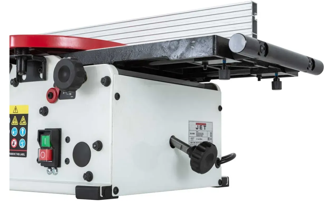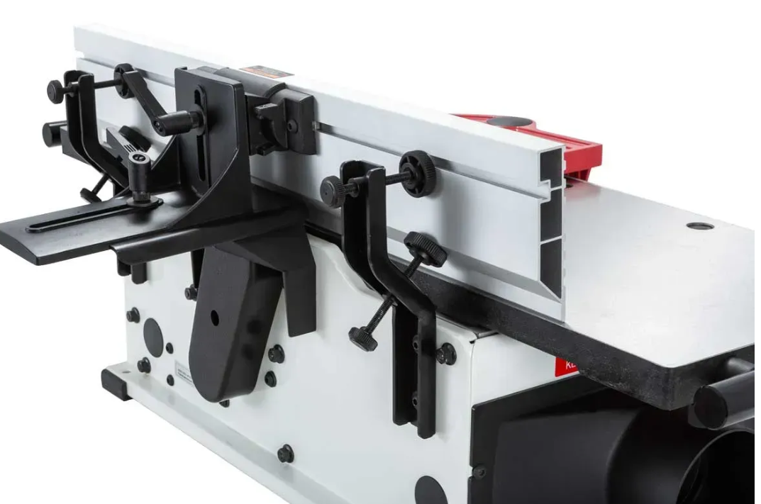 Регулируемые столы, жесткий алюминиевый упор и удлинители до 1400 мм дают стабильность даже при работе с длинными заготовками. Аспирация адаптируется под 64 или 100 мм – легко подсоединить любую систему сбора стружки.
