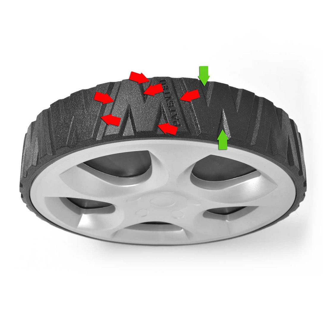 Высота среза легко регулируется одним рычагом, который регулирует все четыре колеса одновременно.