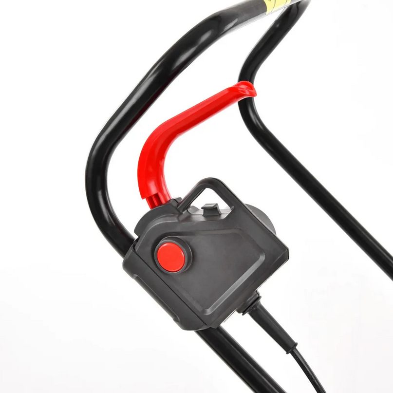 Дополнительно для вашей безопасности есть кнопка безопасного запуска, без нажатия которой косилка не заведется.