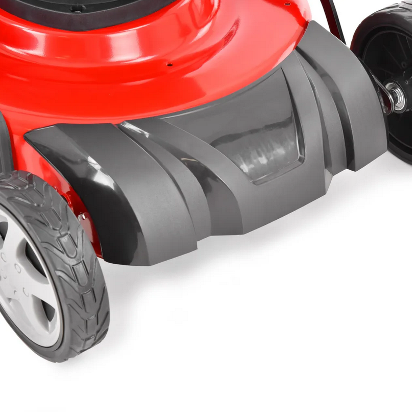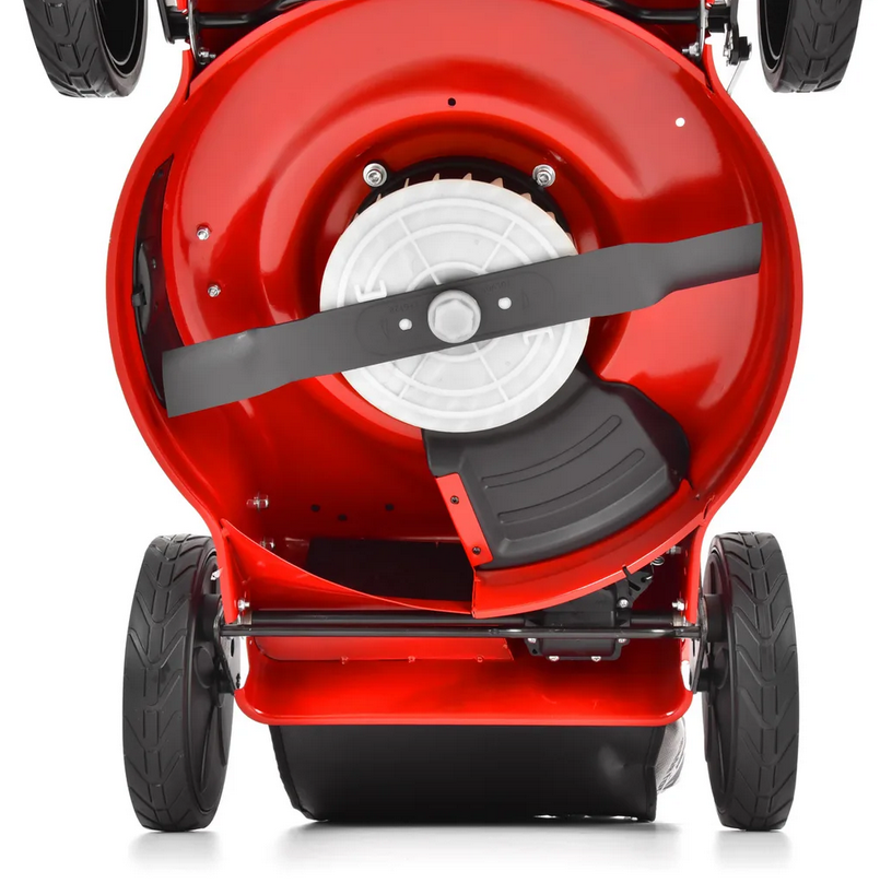 Посмотрев на колеса видим большое преимущество газонокосилки - благодаря большему диаметру задних колес. Ею без труда можно будет маневрировать на более сложном рельефе, она становится значительно удобнее при выполнении разворотов.