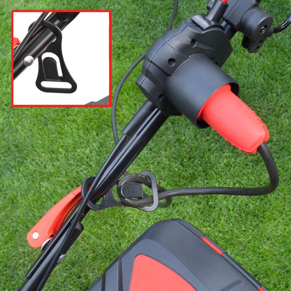 - Продуманная чашеобразная, защищенная розетка для подключения косилки к сети.