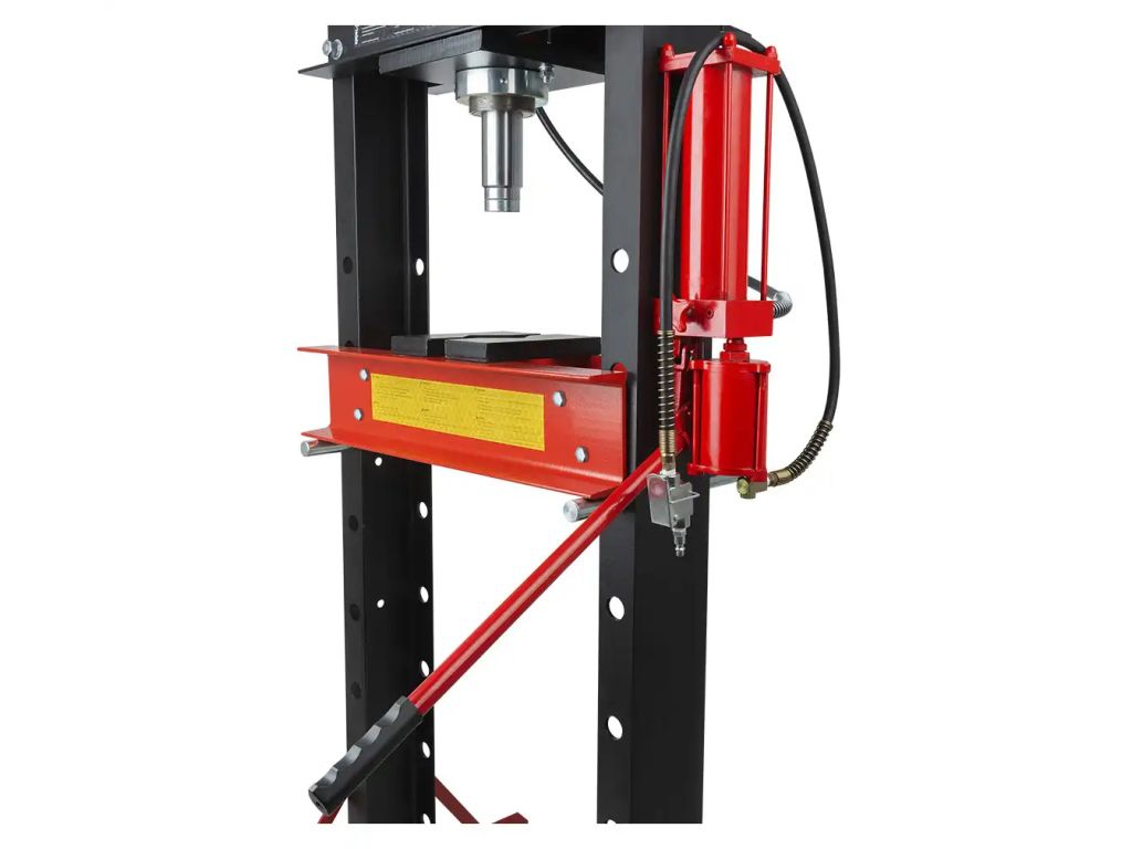 2 режима работы, быстрый и медленный ход, позволяют максимально точно регулировать усилие. С помощью простого клапана поршень автоматически возвращается в исходное положение, что упрощает рабочий процесс. Конструкция с усиленным металлическим каркасом весом 125 кг очень прочная и стабильная. Функциональные характеристики и высокая надежность делают этот пресс пневмогидравлический для автосервиса чрезвычайно эффективным для выполнения даже сложных задач.