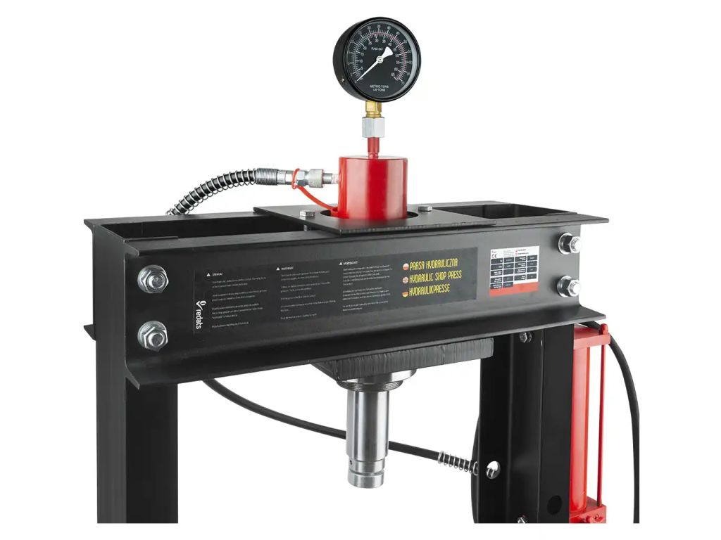 Гидравлическо-пневматический пресс двойного действия 30 т REDATS H-380P – это мощное оборудование для запрессовки, выравнивания, гибки, рихтовки и формирования металлических конструкций с силой давления 30 тонн. Оснащен 2 насосами – пневматическим и гидравлическим, что обеспечивает высокую скорость и бесперебойность работы. Высота опорного стола регулируется на 8 позиций в диапазоне 0-960 мм. Ширина стола 540 мм позволяет работать с достаточно большими деталями. Для контроля силы давления есть четкий манометр.