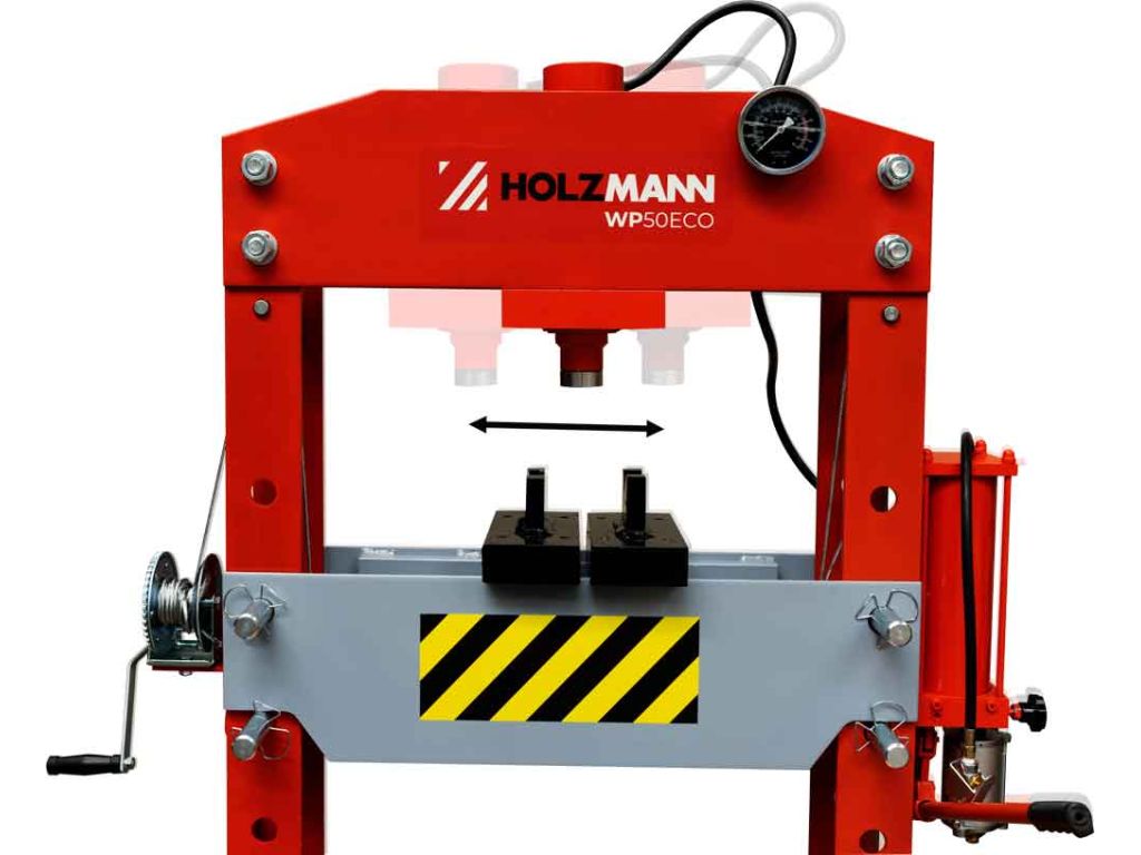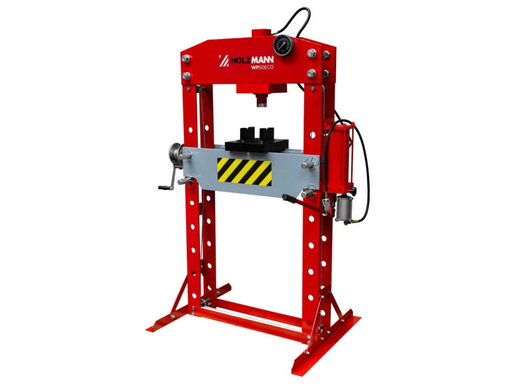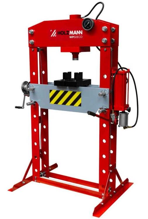 Пресс гидравлический Holzmann WP50ECO используется для запрессовки и выпрессовки различных металлических деталей (подшипники, шкивы, маховики, зубчатые колеса и т.п.) при ремонтных и сборочных работах. Усилие прессования составляет 50 тонн и может регулироваться вручную и с помощью пневматики.