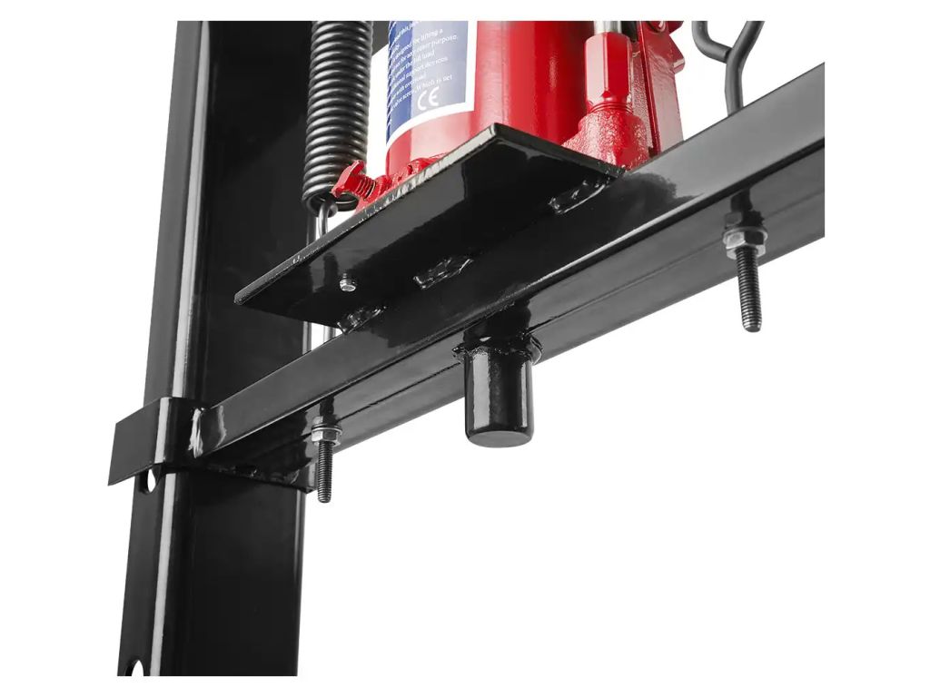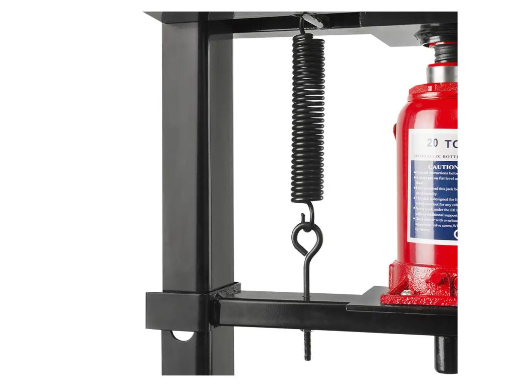 Пресс оснащен бутылочным домкратом, позволяющим установить опорный стол на 8 положений в диапазоне 0-770 мм. Благодаря 2 прочным пружинам при открывании клапана поршень автоматически возвращается назад, что экономит время и упрощает работу. Простая конструкция из высококачественной инструментальной стали устойчивая к деформациям и износу и очень надежная, что гарантирует беспроблемную эксплуатацию и долговременную службу.