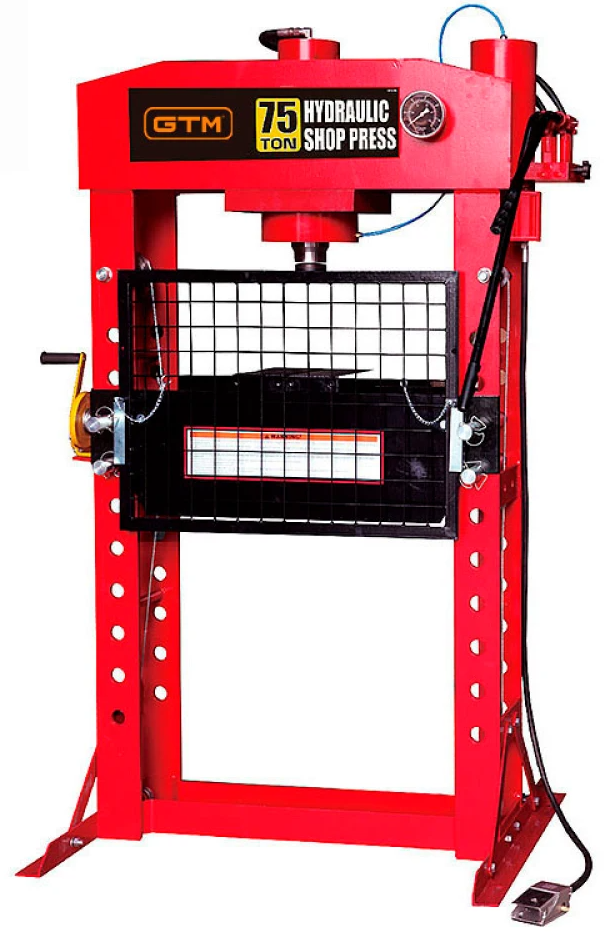 GTM TY75021 - стационарный пневмогидравлический пресс для запрессовки и выпрессовки различных деталей. Такой тип пресса отличается простотой, большой надежностью и малыми размерами, что позволяет использовать его как на предприятиях и автосервисах, так и в быту.
