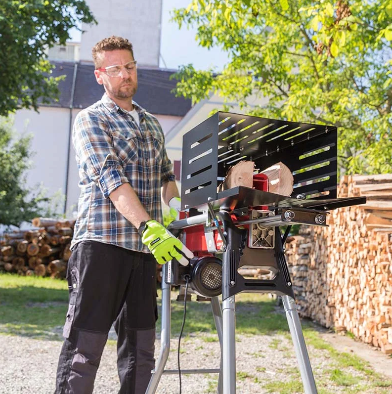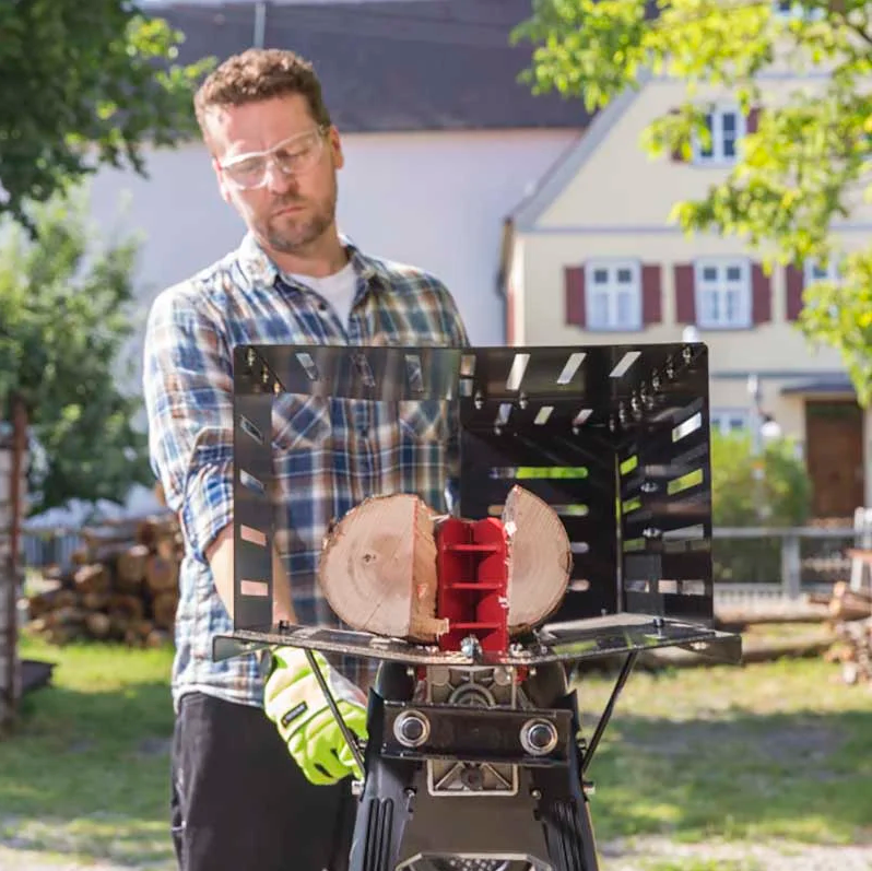 Сетевой дровокол Al-Ko LSH 520/5 — горизонтальное устройство для заготовки дров. Максимальная длина бревна составляет 520 мм, диаметр — 250 мм. Рабочая сила дровокола составляет 5 т. Металлический кожух уберегает мастера от получения травм. Система управления 2 руками для безопасности мастера. Конструкция компактная, устойчивая и мобильная. Весит аппарат на ножках 47 кг.