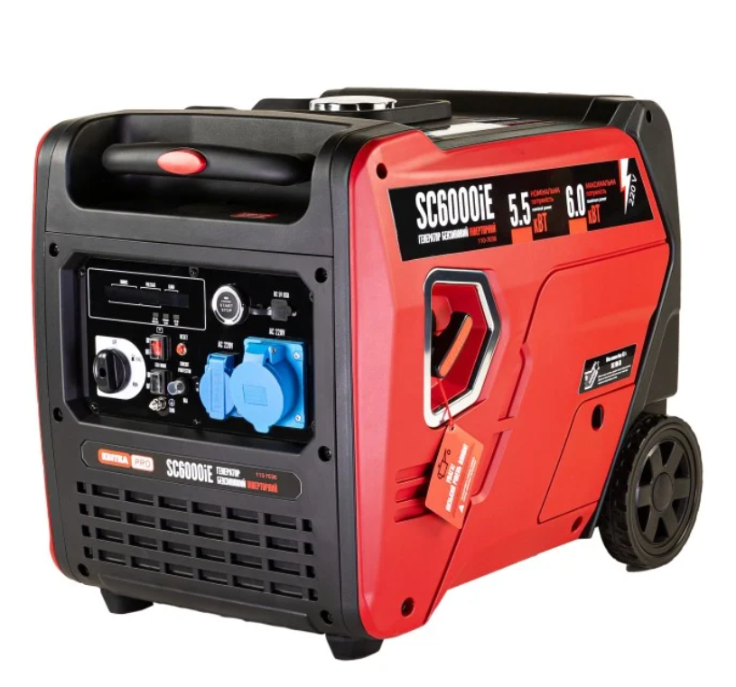 • Бензогенератор инвертор SC6000iE оборудован электростартером, благодаря которому запуск занимает считанные секунды и не требует физических усилий.