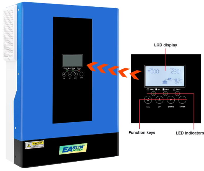 Выходное напряжение в режиме батареи стабильно поддерживается на уровне 230 В переменного тока. Чистая синусоидальная форма волны делает данное оборудование идеальным для использования с чувствительными электронными устройствами. Пиковая эффективность преобразования энергии от солнечных панелей (PV) в инвертор (INV) достигает 97%, а от батареи до аппарата – 94%, что минимизирует потери энергии и повышает общую эффективность. Солнечная батарея может иметь максимальную мощность до 6500 Вт. Контроллер заряда энергии MPPT обеспечивает оптимальный режим зарядки, а интервал MPPT при рабочем напряжении составляет 60-500 В постоянного тока.