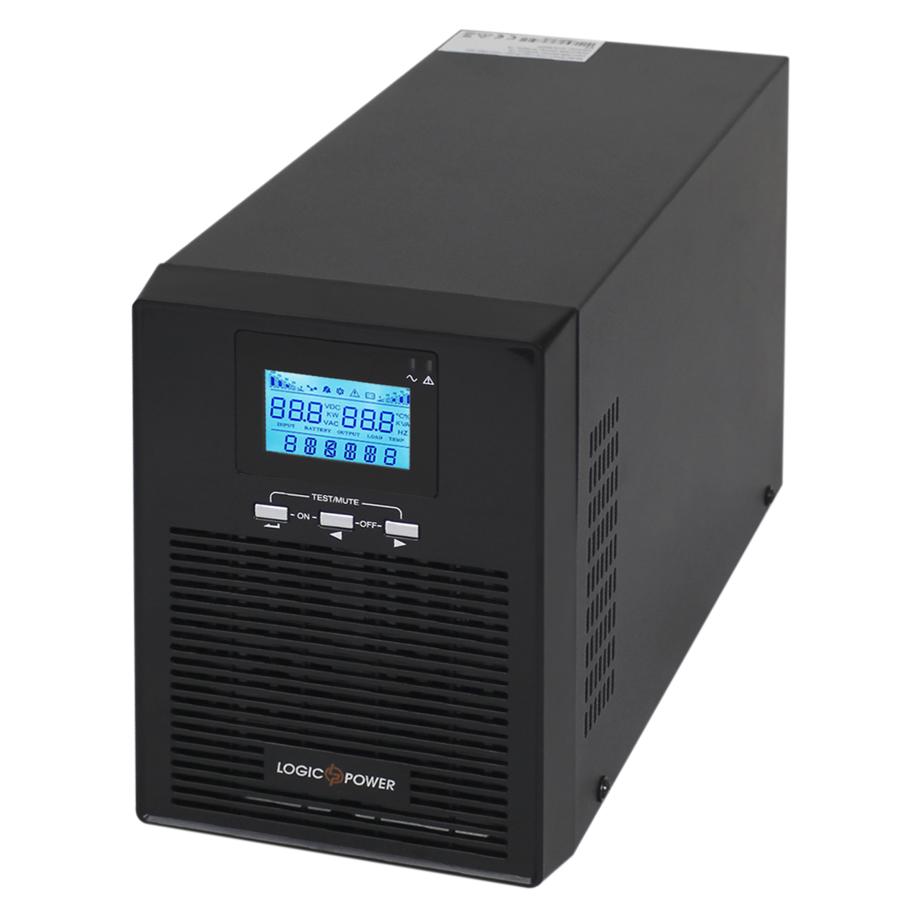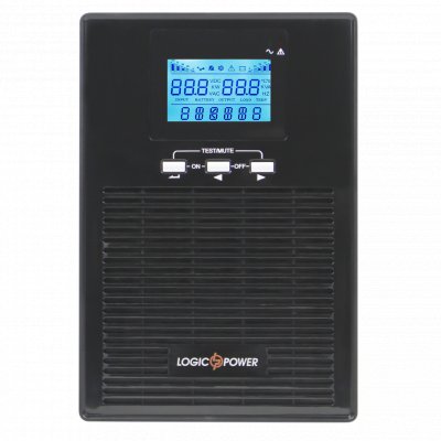 Корпус Smart-UPS LogicPower-2000 PRO (with battery) изготовлен из металлического сплава. На передней панели расположен LCD экран для контроля параметров работы устройства.