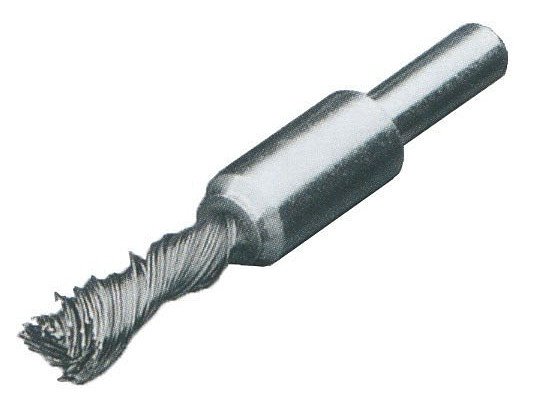 Щетка концевая Lessmann 451278, D10х25 мм, хвостовик 6 мм, высокопрочный стальной провод 0,25 мм, 4500 об/мин Характеристики: Размер: D10х25 мм Хвостовик 6 мм Высокопрочный стальной провод 0,25 мм 4500 об/мин Страна-производитель: Германия Из-за необычно высоких нагрузок, испытываемых данными щётками, используется при их производстве проволоку особого состава. В зависимости от количества оборотов, щётка изменяет свой диаметр и делает возможной обработку труднодоступных мест, напр., отверстий и углублений на корпусных деталях. Корпус жгутовых щёток с нержавеющей проволокой имеет пластиковую оболочку, обеспечивающую защиту нержавеющих поверхностей, маркированную зелёной точкой. Щётки имеют хвостовик 6 мм