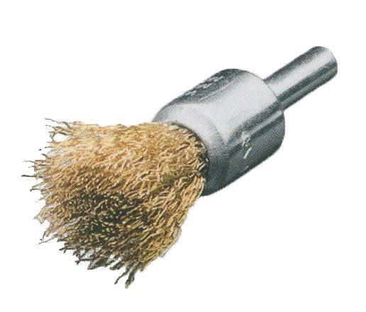 Концевые щётки с хвостовиком отлично проявляют себя при удалении заусенцев, краски и остатков резины в особо труднодоступных местах, а также при чистке форм и литья. Эффективны при обработке кромок, скруглений и углублений внутри отверстий.