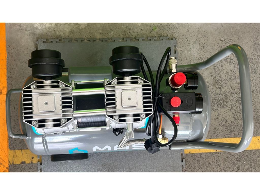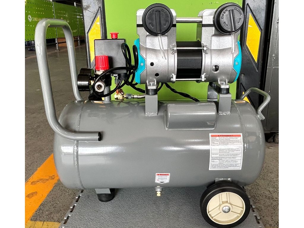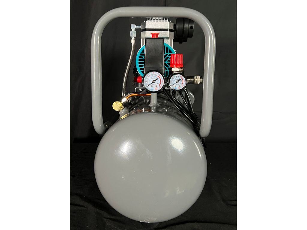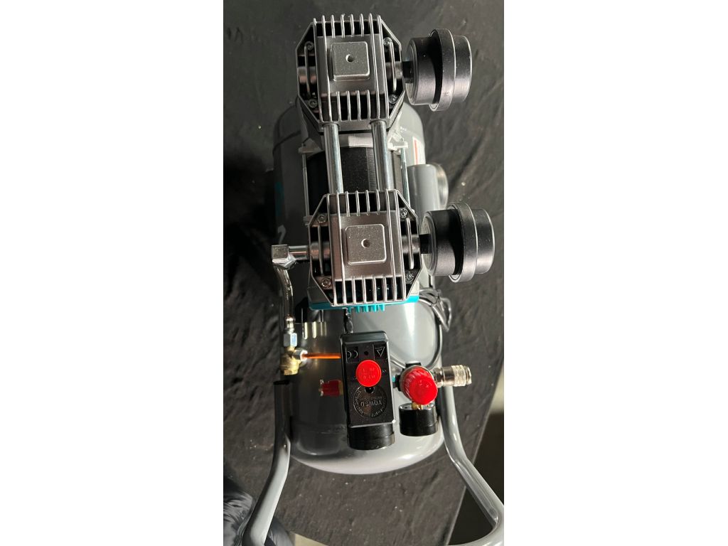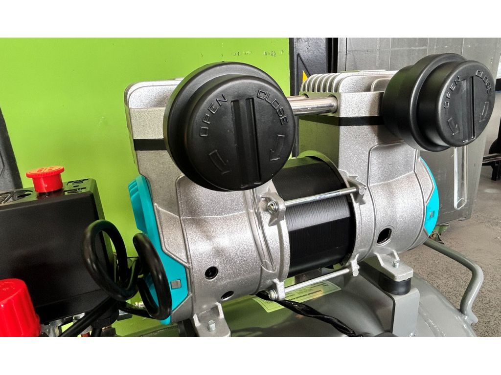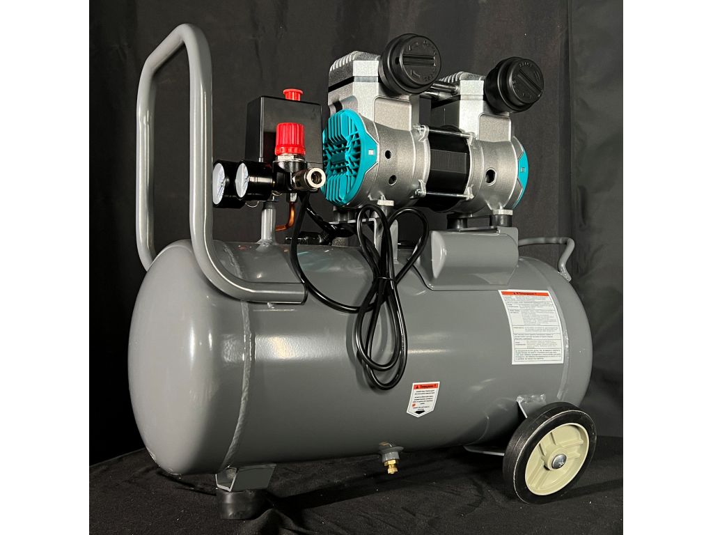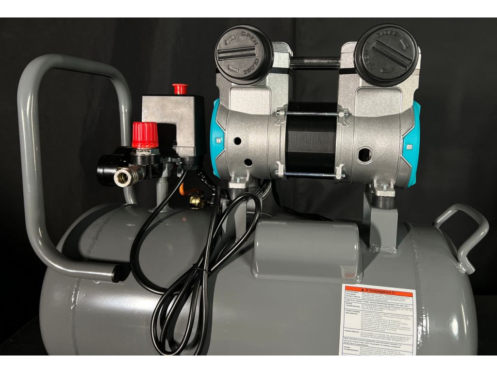 Двухцилиндровая конструкция обеспечивает равномерную подачу сжатого воздуха и стабильное давление на выходе. Поршневые кольца из тефлона имеют низкий коэффициент трения, что обеспечивает равномерное движение поршней и быстрый отвод тепла без использования масла. Манометры в ресивере и на выходе с редуктора позволяют контролировать текущее давление, а редуктор – точно выставить нужное давление. Термозащита двигателя, автоматически останавливающая работу оборудования при чрезмерном нагреве, делает этот поршневой компрессор без масла надежным и долговечным.