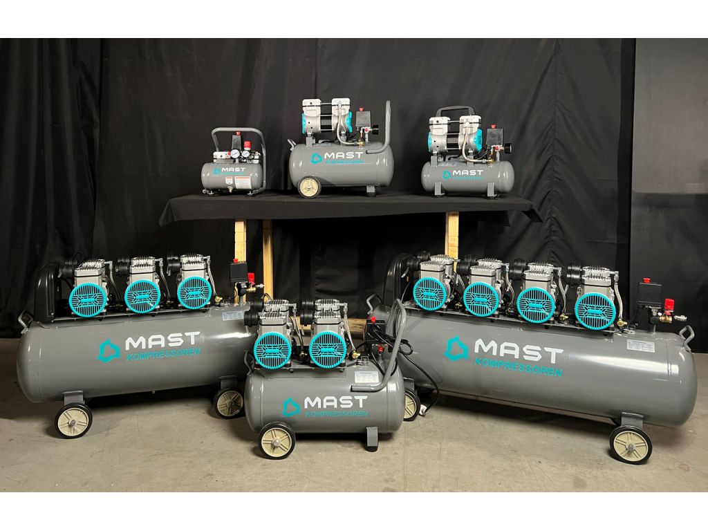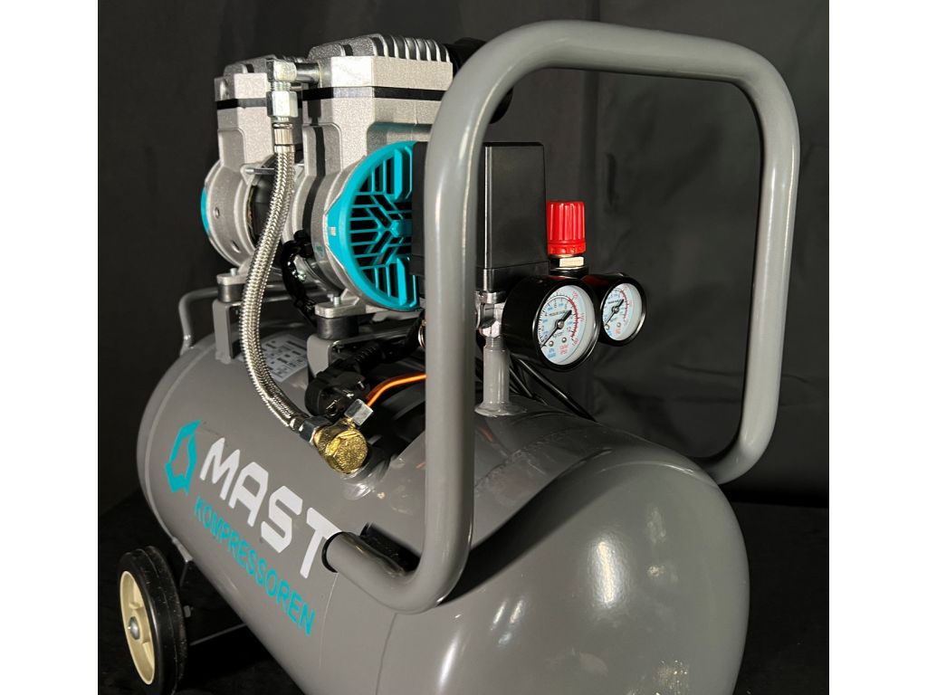 По сравнению с масляными поршневыми, безмасляные компрессоры Mast гораздо тише в работе, а увеличенные обороты двигателя и большой диаметр поршней обеспечивают высокую производительность.