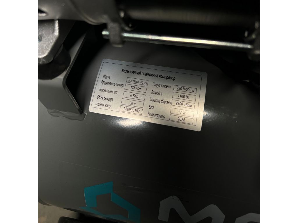 - Объем ресивера – 30 л