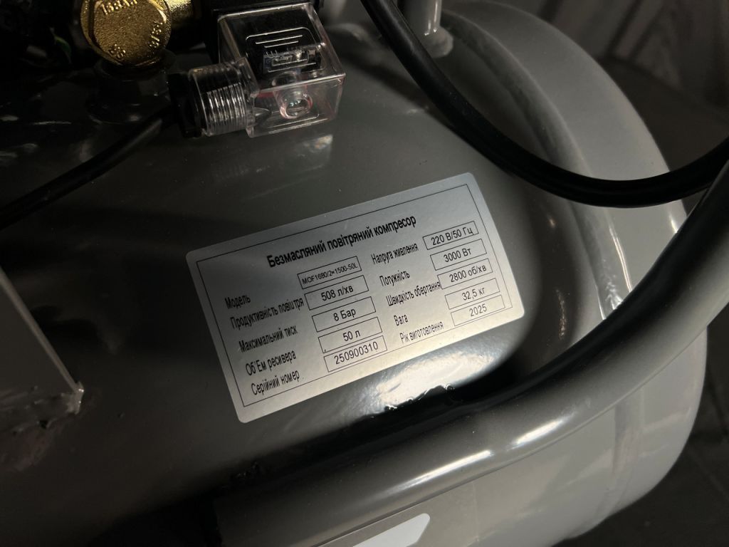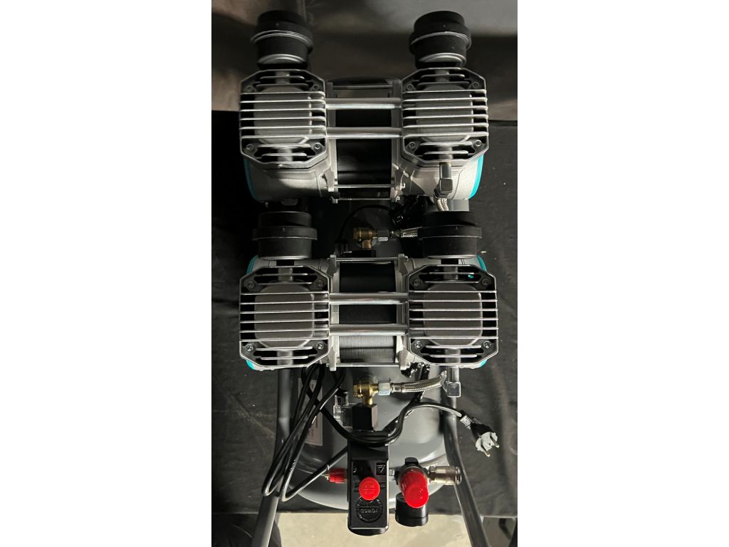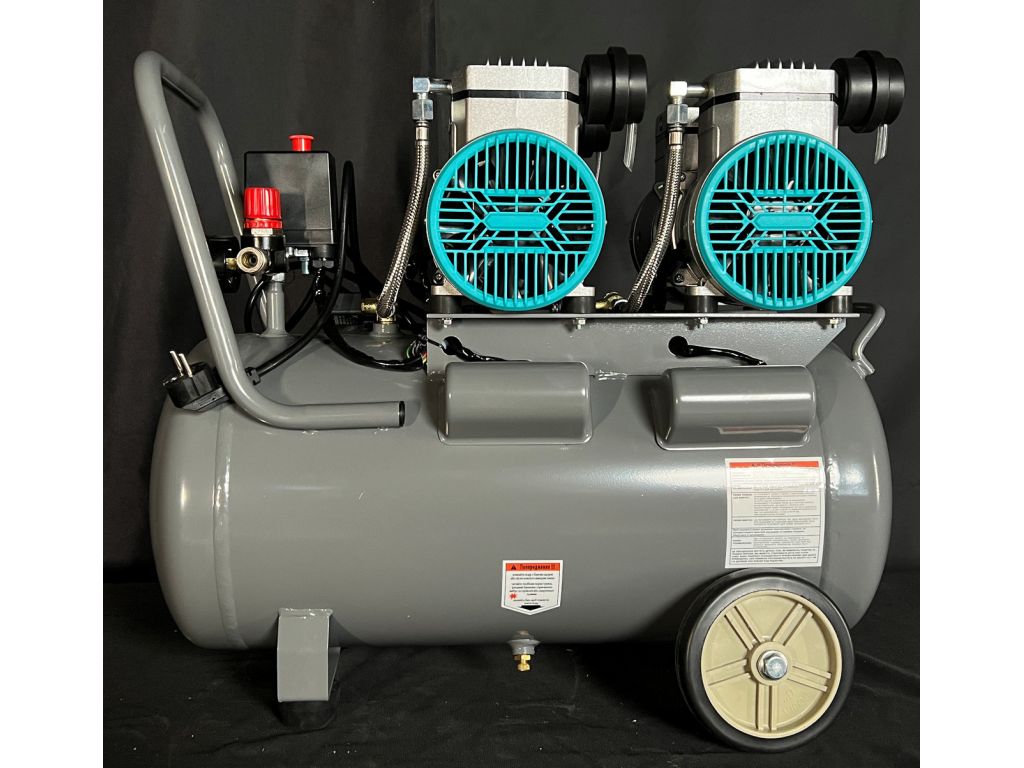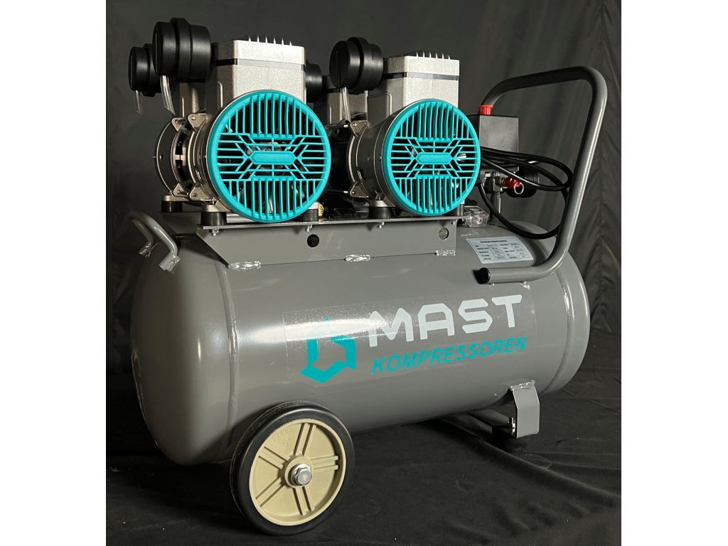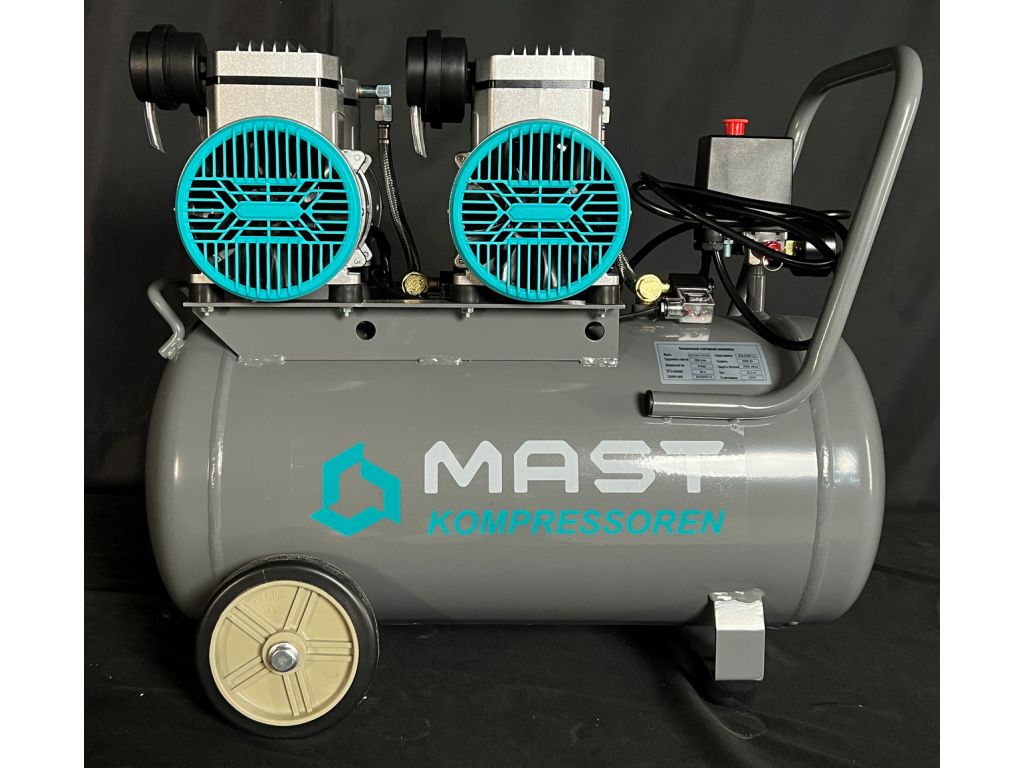 Безмасляный поршневой компрессор Mast MOF1680/2x1500-50L с двумя независимыми двигателями мощностью 1,5 кВт каждый и ресивером 50 л обеспечивает стабильную подачу сжатого воздуха без примесей масла с производительностью 508 л/мин и максимальным давлением 8 Бар. Идеально подходит для питания стоматологического и лабораторного оборудования, пищевой промышленности, покрасочных работ и аэрографии.