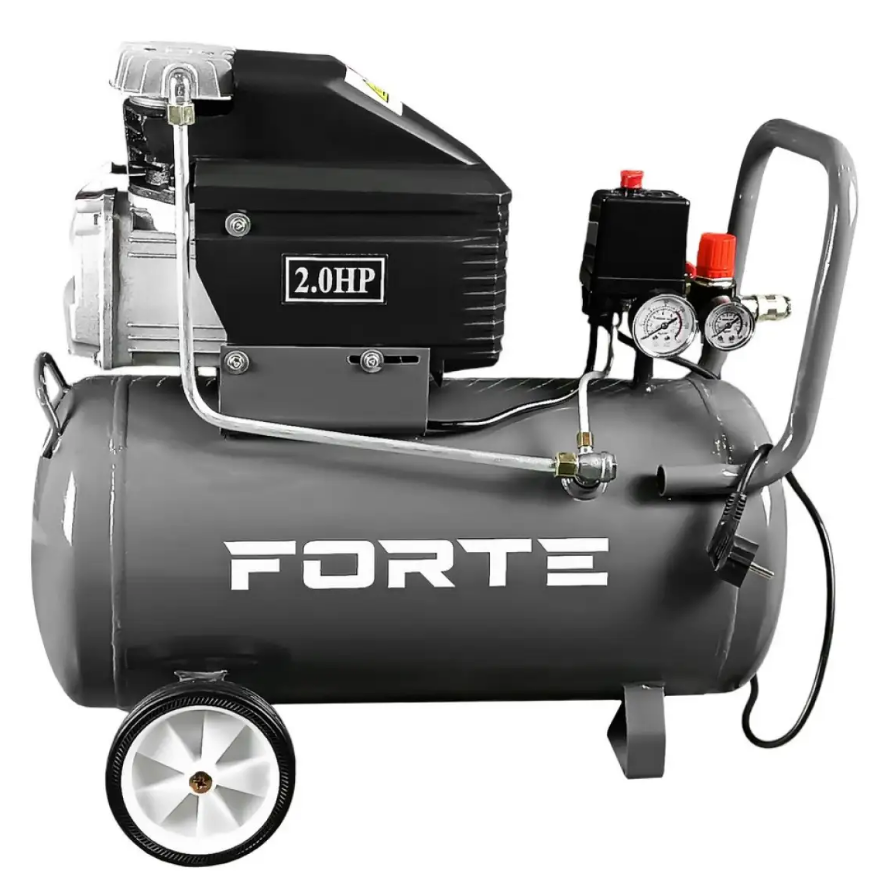 Компрессор Компрессор Forte FL-2T50N – мощная одноцилиндровая модель для бытовых нужд. Компрессор можно использовать для подкачки колес, продувки, работы разного пневмоинструмента. Аппарат оборудован однофазным электромотором, производительность 200 л/мин. Ресивер изготовлен из стали с антикоррозионной отделкой. Для удобной транспортировки предусмотрены 2 колеса и ручка.