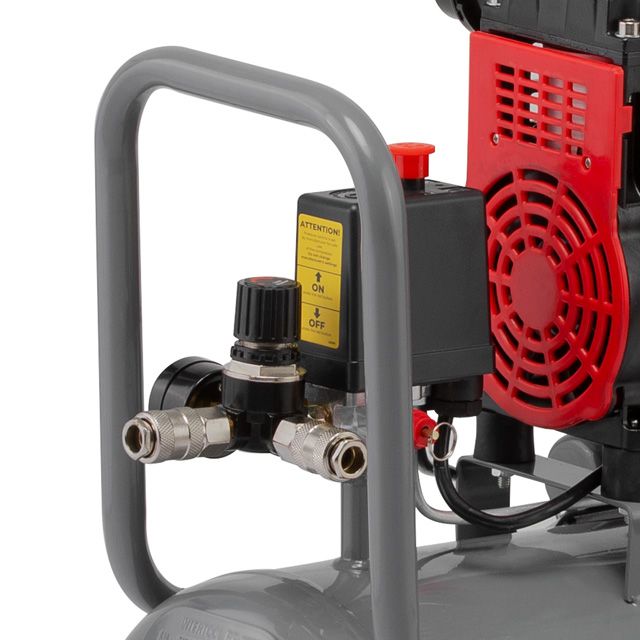 Для регулировки давления в ресивере и на выходе установлены два манометра с редуктором, что позволяет регулировать и постоянно поддерживать выходное давление необходимое вашему инструменту или оборудованию.