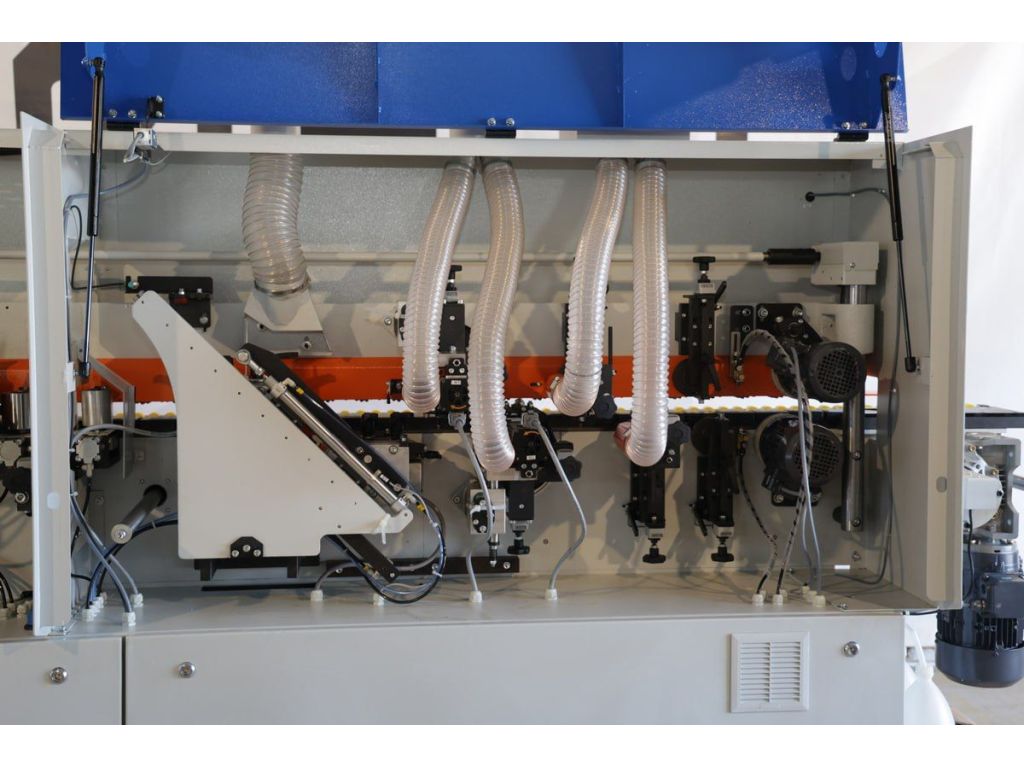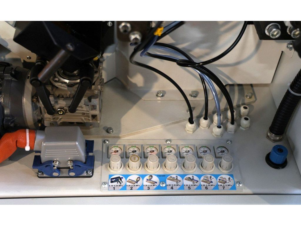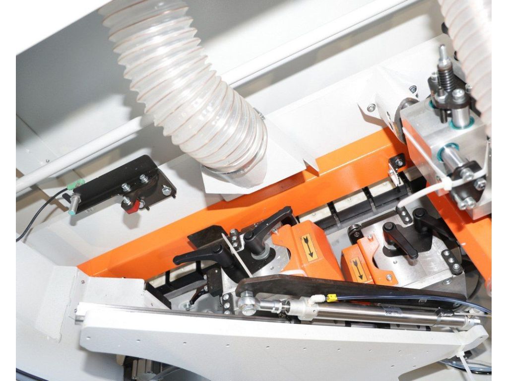 - Антистатическое покрытие роликов гарантирует чистую поверхность кромочного материала и равномерный прижим кромки;
